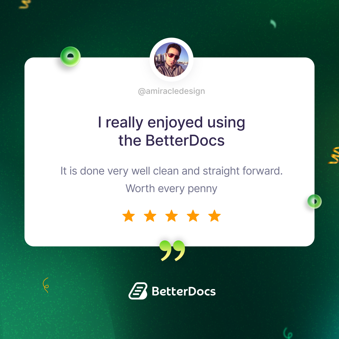 Yes, we might be building the product, but nothing is valuable without our users. So this is not only us, this is you who are continuously trying to make BetterDocs better by creating amazing, creative documents.