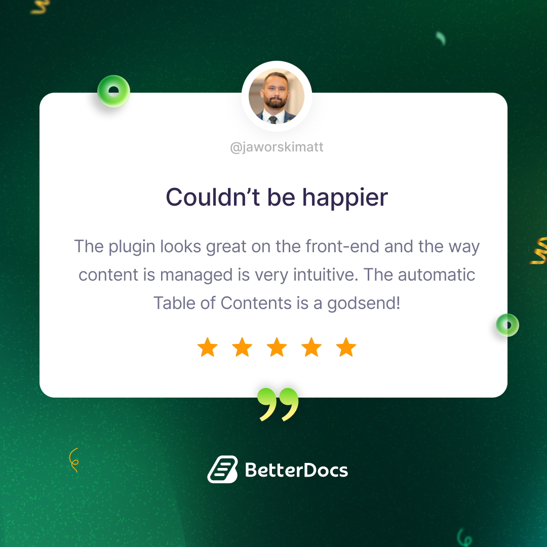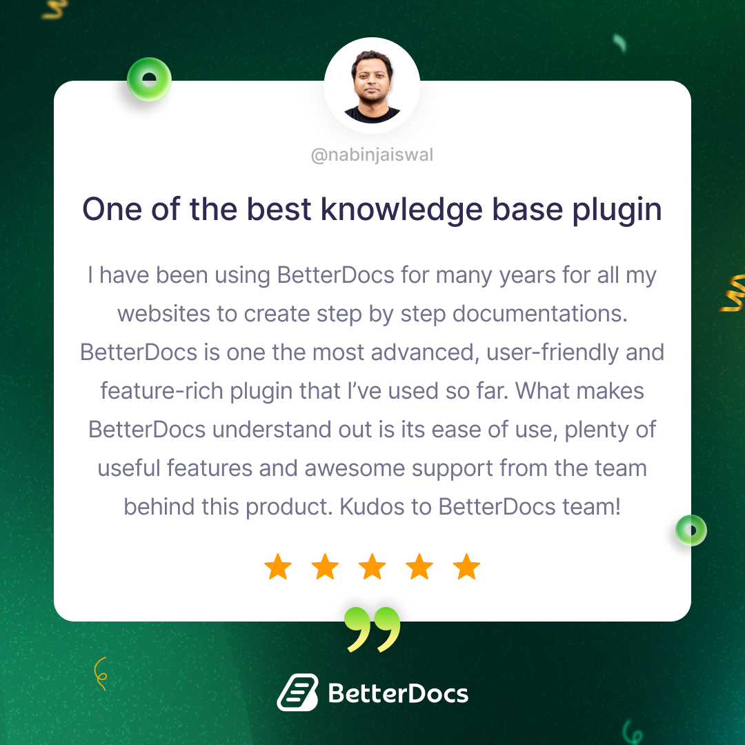 Over the years, BetterDocs and our team have wholeheartedly tried hard to make the document management system more efficient. With the feedback and suggestions of our valued users, we gained trust and powered up the plugin with amazing features. We are delighted by the support and love you have shown us.